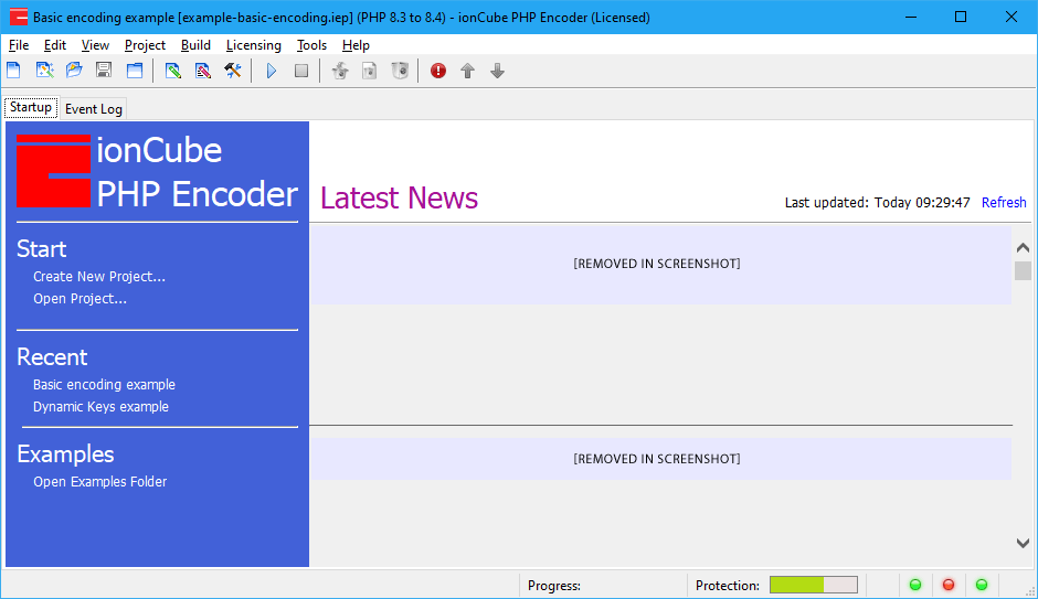 Now that all of the previous steps have been fulfilled, the project should be ready to encode. Please note that this example uses minimum requirements for your first project and we recommend using advanced settings such as the Keys features for the best protection.