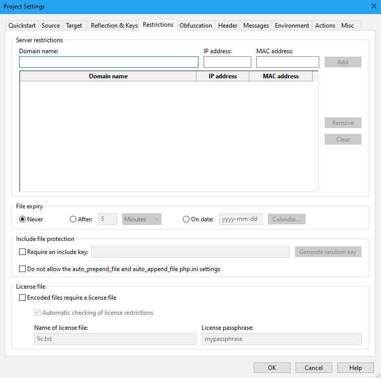 If you have set the domain restriction in the encoded files themselves then the files will not run as the domain restriction will always be enforced but cannot be satisfied. The Encoder GUI does not provide a way around that but with the command-line encoders you can use the “–trust-unnamed-servers” option. Then the files will run with CLI PHP even though they have a domain restriction.